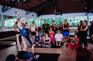 Oficinas multiníveis que combinam yoga, acrobacias e massagem tailandesa.